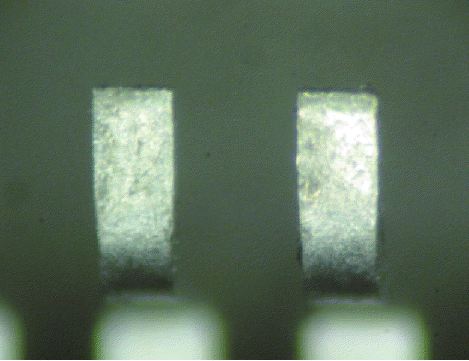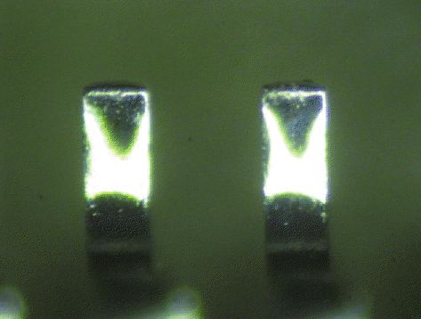 Αυτή δεν είναι μέθοδος ανίχνευσης παραποίησης, καθώς η οξείδωση συμβαίνει φυσικά. ωστόσο, αποτελεί σημαντικό ζήτημα για λειτουργικότητα και κυριαρχεί ιδιαίτερα σε καυτά και υγρά κλίματα όπως η Νοτιοανατολική Ασία και τα νότια κράτη στη Βόρεια Αμερική. Το πρότυπο άρθρωσης J-STD-002 ορίζει τις μεθόδους δοκιμής και τα κριτήρια αποδοχής / απόρριψης για συσκευές διάτρησης, επιφανειακής στερέωσης και BGA. Για συσκευές επιφανειακής τοποθέτησης που δεν είναι BGA, χρησιμοποιείται το dip-and-look και η "δοκιμή κεραμικών πλακών" για συσκευές BGA έχει ενσωματωθεί πρόσφατα στη σουίτα υπηρεσιών μας. Συσκευές που παραδίδονται σε ακατάλληλη συσκευασία, αποδεκτή συσκευασία αλλά έχουν ηλικία άνω του ενός έτους ή εμφανίζουν μόλυνση στις καρφίτσες συνιστώνται για δοκιμές συγκολλήσεως.